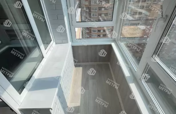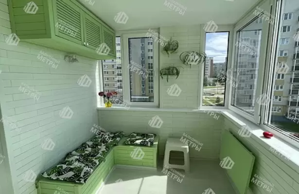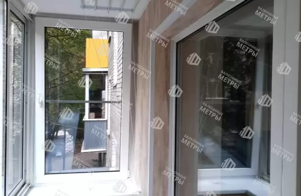 Отделка и остекление П-образного балкона без утепления, в кирпичном доме
