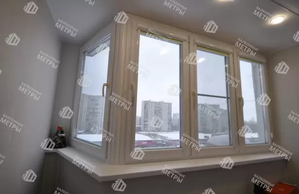 Отделка балкона МДФ панелями с эркерным остеклением Rehau
