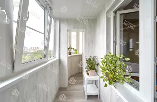 Панорамное остекление и отделка п-образного балкона с утеплением
