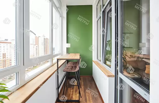 Дизайн-проект отделки лоджии под ключ с объединением кухни и панорамным остеклением